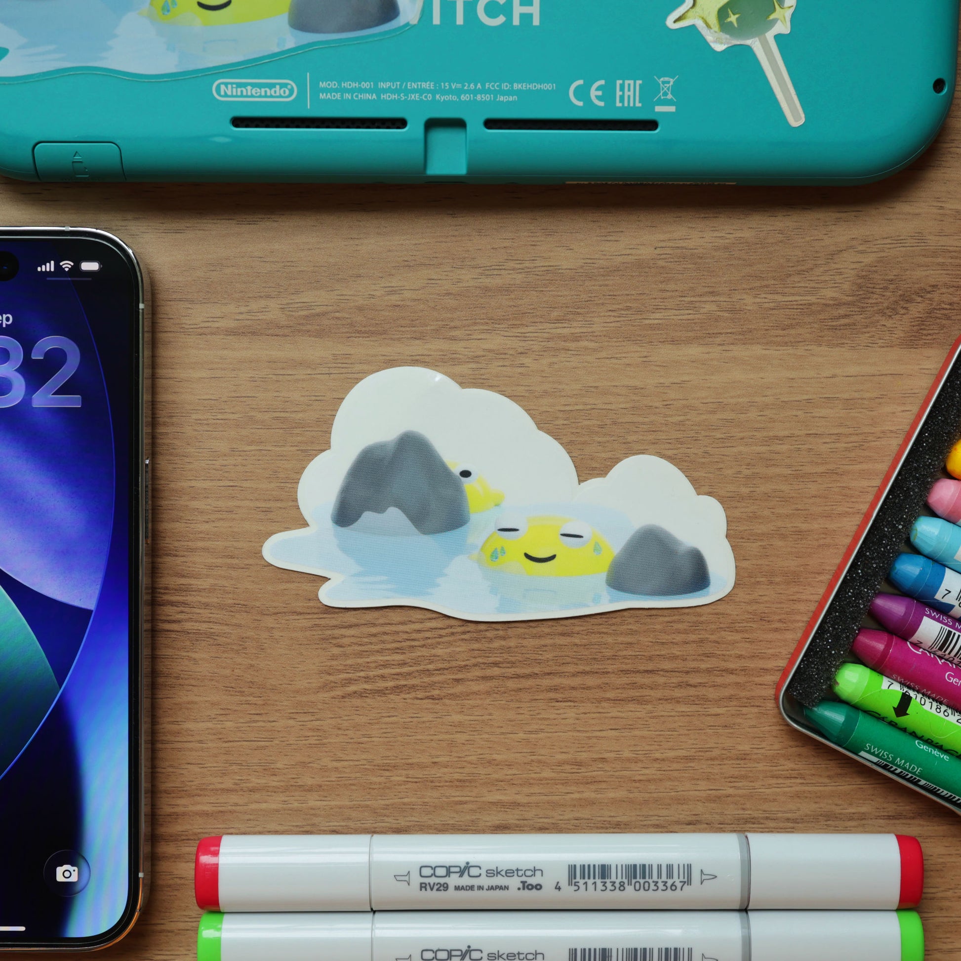 Relax with these two lemon friends enjoying a hot spring soak. Handmade in Blender.
